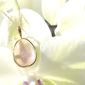 美肌に魅せてくれるローズクォーツのやわらかなピンクが魅力的なネックレス。
