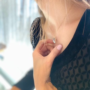 エッグオーバル(卵型)のオリジナルカットが、柔らかさとシャープさを絶妙なバランスとなり上品で綺麗なマイジュエリーとしてのネックレスになります。